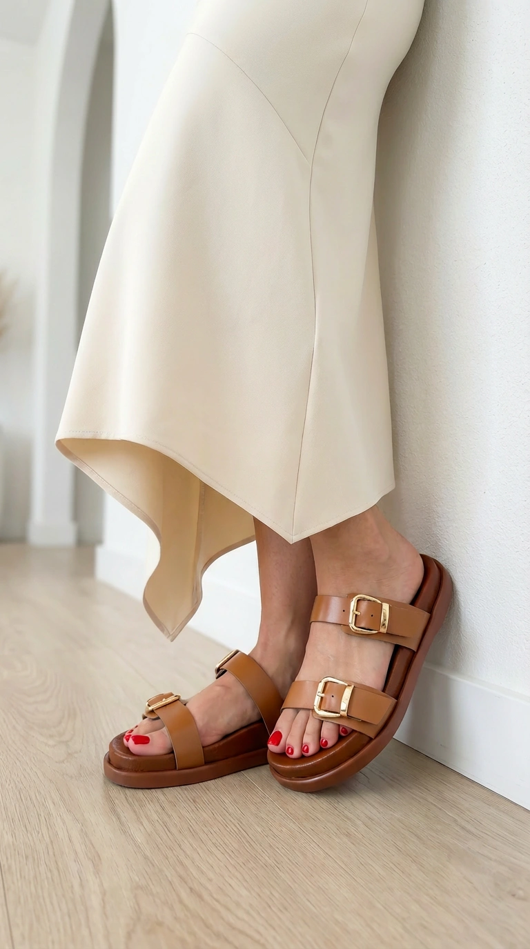 طراحی مینیمال و شیک با دو بند پهن و سگک طلایی